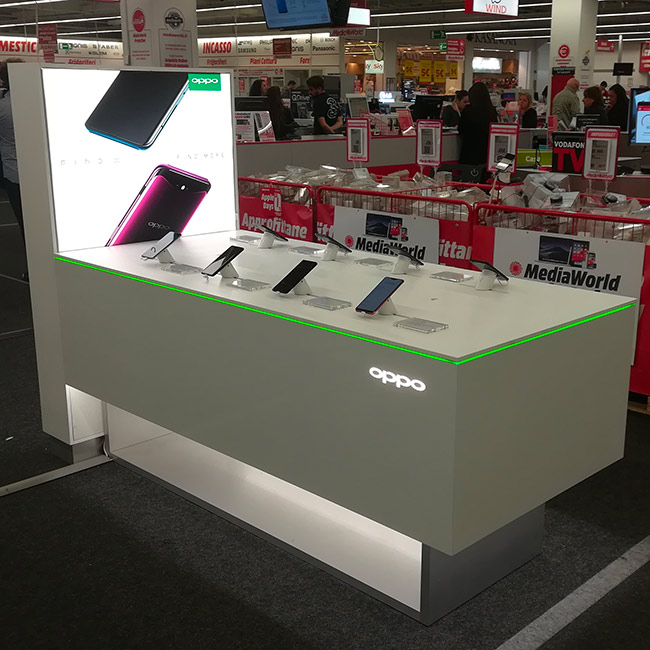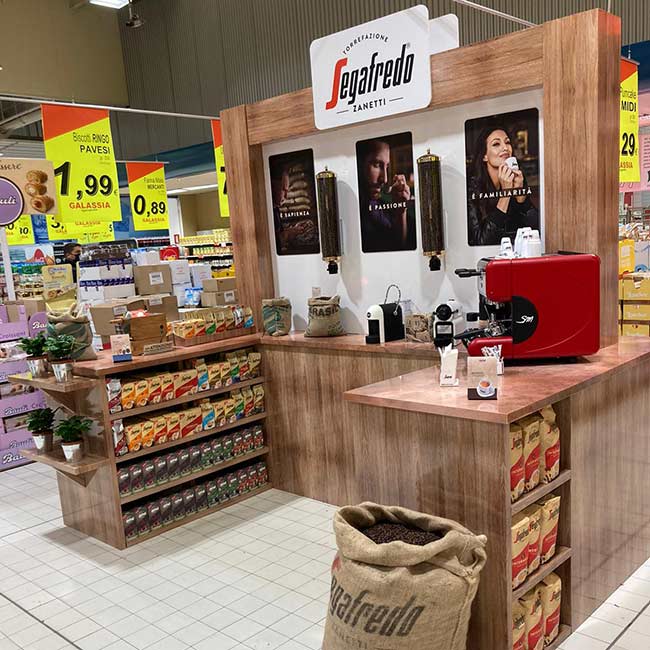 I corner espositivi sono spazi delimitati dediti alla promozione permanente di prodotti e servizi. Sono installazioni molto utili all’interno di centri commerciali e supermercati, dove spesso vengono utilizzati per offrire assaggi, eseguire dimostrazioni e fornire informazioni dettagliate sul brand.